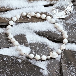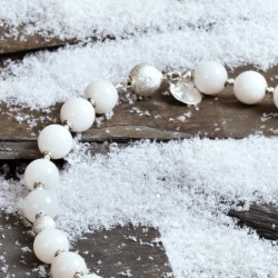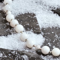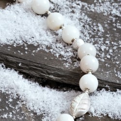 festliche Halskette aus weißen Schneejade-Kugeln, mit versilberten Metallelementen und versilbertem Kugel-Steckschloß, Länge ca. 49cm