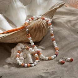 bezauberndes Schmuck-Set aus Perlmutt- und Muschelperlen, mit versilberten Kugelschließen, Halskette ca. 41cm , Armband 20cm, Ohrringe 4cm lang